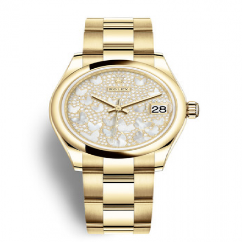 密镶262颗钻石表盘,镶有粉红色珍珠母蝴蝶图案